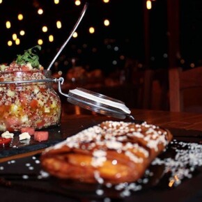 Its dishes combine local flavors with Greek and Aegean flavors. Fennel, croutons, capers, basil, sun-dried tomatoes, savory black, red pumpkin, fresh eggs, extra virgin olive oil, local cheeses, meat of great quality, seafood and well-made pasta with wines from Greek vineyards.